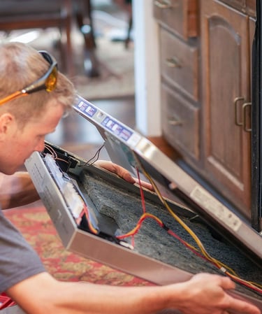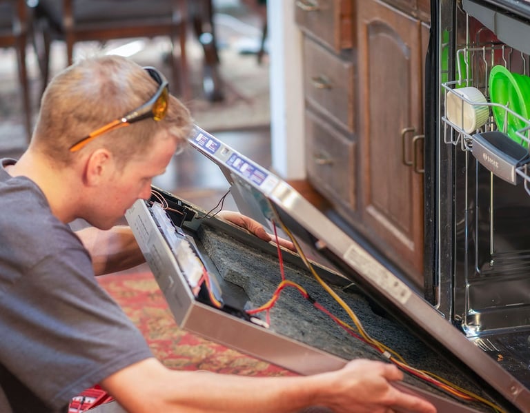 Dishwasher Repair & Installation A dishwasher that won't start, stops mid-cycle, won't drain, leaves dishes dirty, or has been flashing an error code and staging a work stoppage since Tuesday is a disruption that most households feel almost immediately. Ironclad diagnoses and repairs common dishwasher problems — door latch failures, drain pump issues, wash arm blockages, water inlet valve failures, and the control board and sensor issues that trigger those cryptic error codes. We also handle dishwasher replacements on existing installations where the space, connections, and drain configuration are already in place, swapping out a failed unit for a new one efficiently and cleanly. For dishwasher installations in spaces where no unit previously existed and new connections are required, we'll scope the work honestly and let you know if licensed plumbing involvement is needed before proceeding.