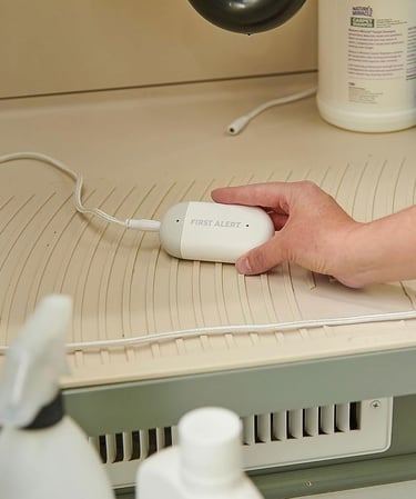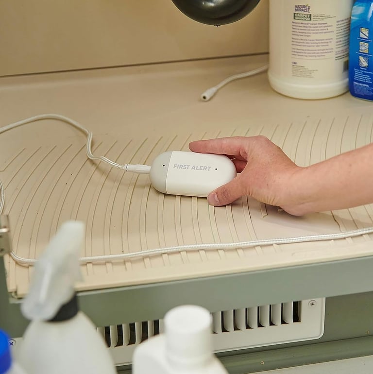 Water Leak Detection Sensor Installation Some of the most damaging leaks in a home are the ones that go completely unnoticed until the evidence shows up as a warped floor, a stained ceiling, or a water bill that's suddenly twice what it should be. A dishwasher supply line dripping inside a cabinet, an ice maker line slowly soaking your subfloor, a washing machine hose that's been failing incrementally behind the machine for months — these are the leaks that do the most damage precisely because no one sees them coming. Ironclad installs water leak detection sensors in the locations where silent leaks are most likely to occur — under sinks, behind washing machines, beneath dishwashers, near ice makers, and around water heaters — giving you an early warning the moment moisture appears where it shouldn't. Leak detection sensors sound an audible alarm and can send a smartphone notification, giving you the chance to address a minor drip before it becomes a major restoration project. It's one of the most cost-effective protective investments a homeowner can make, and it takes less than an hour to have several sensors placed and tested in unseen locations throughout your home.