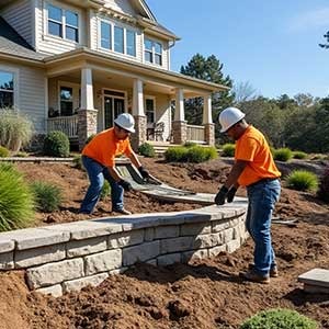 Retaining Wall Installation & Repair A well-built retaining wall controls erosion, manages slope, defines outdoor spaces, and adds genuine visual appeal to a yard that would otherwise be difficult to use or maintain. Ironclad installs and repairs retaining walls using timber, natural stone, and interlocking concrete block for walls for residential landscaping uses. We pay careful attention to proper drainage and backfill behind every wall we build, because a retaining wall without adequate drainage behind it will eventually fail regardless of how well the face is constructed. For walls exceeding three to four feet in height, walls located near structures or property lines, or situations where the retained soil carries significant surcharge load, we'll assess the scope honestly and let you know whether a licensed engineer needs to be involved before work begins.